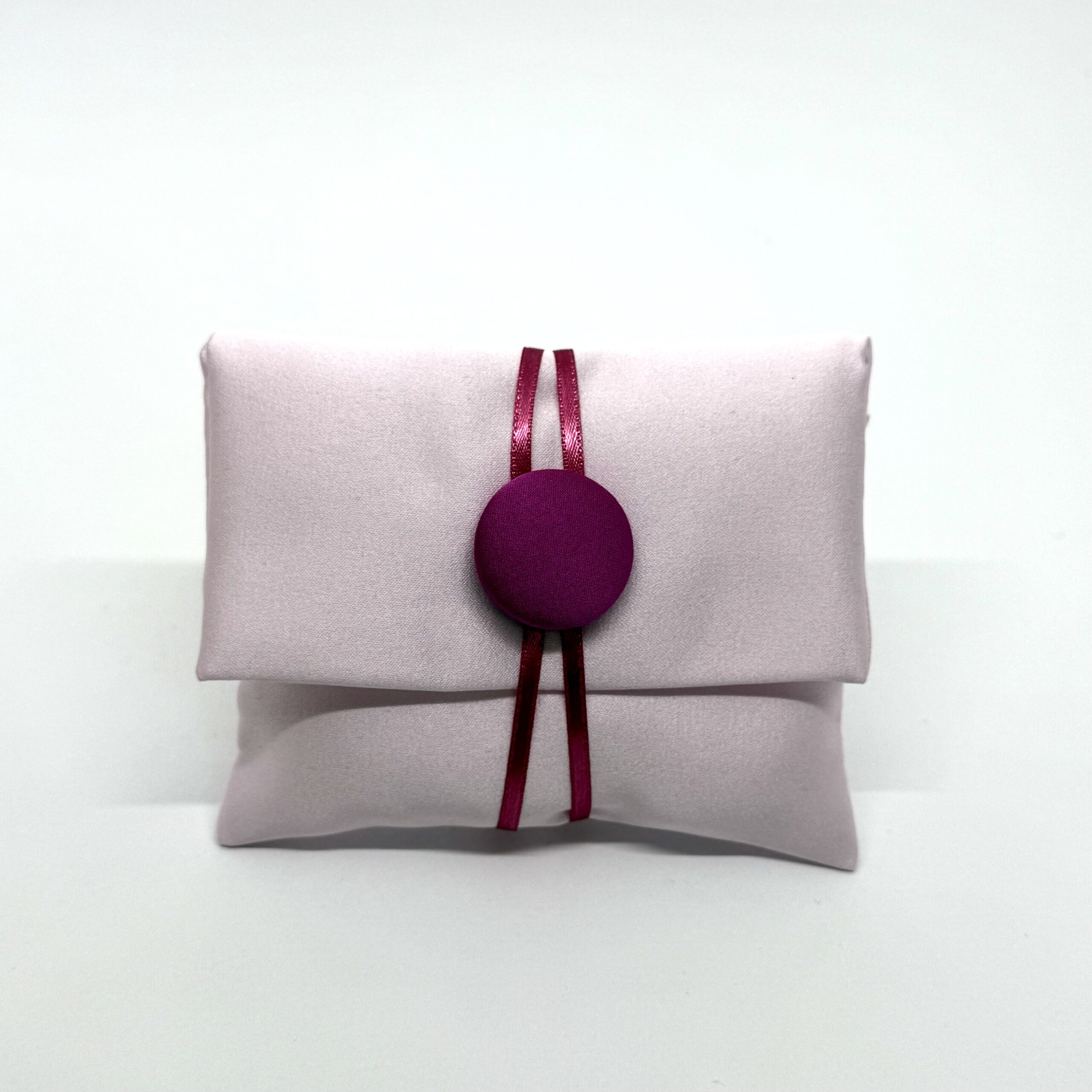 busta in raso duchesse rosa con bottone giallo e 3 mm fuxia