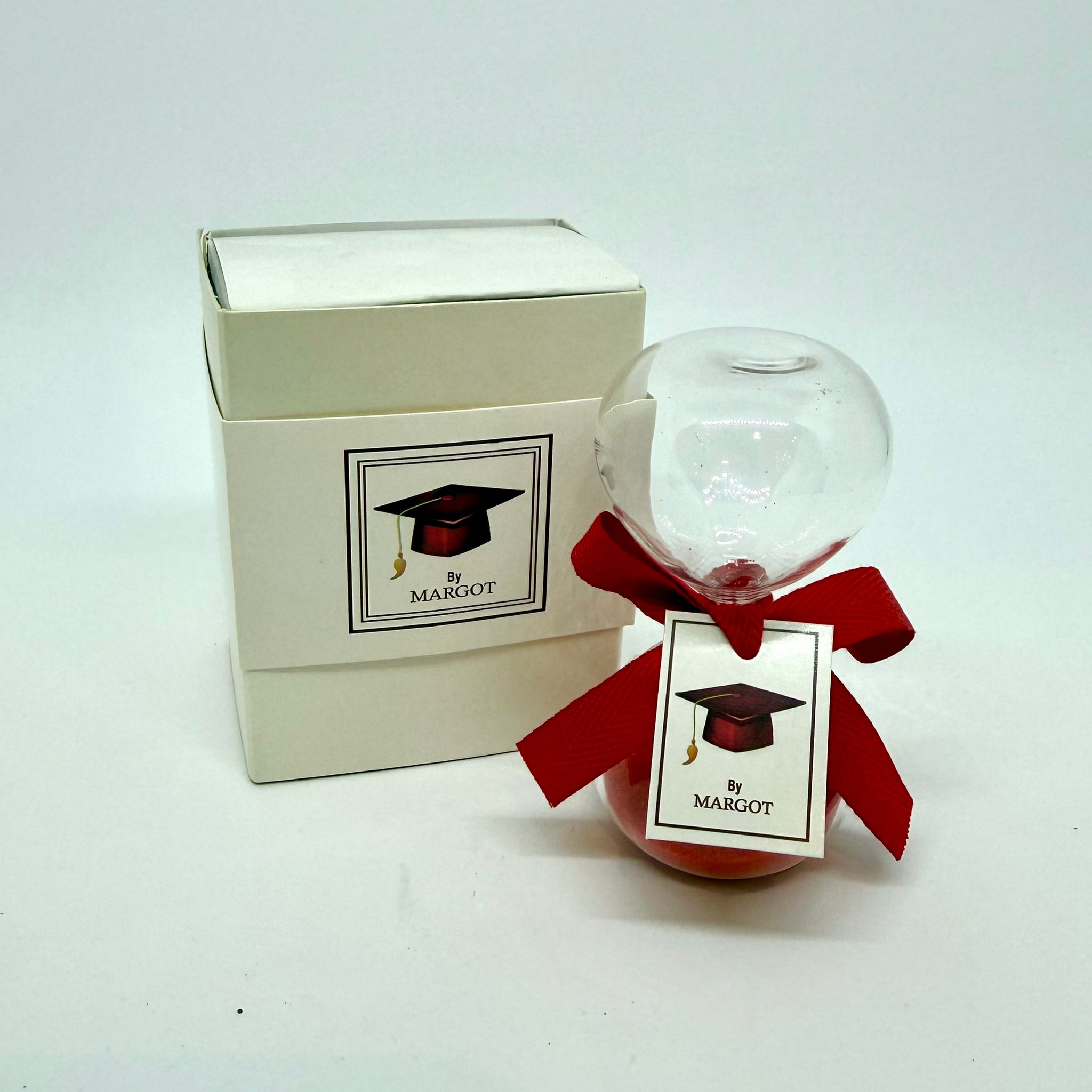 Bomboniera laurea clessidra, con scatola e blister confetti, altezza 7 cm.