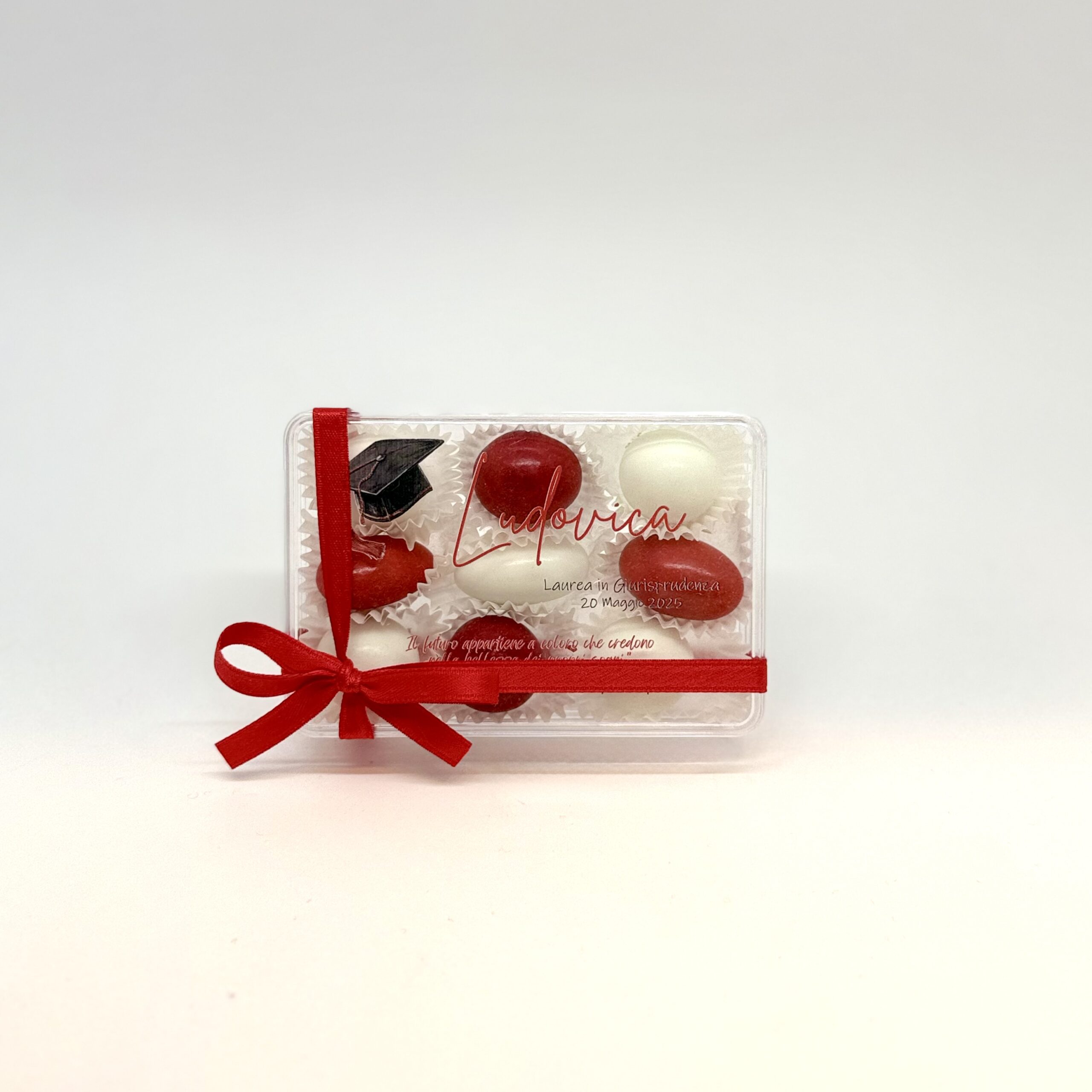 scatolina rettangolare fondo e coperchio in plex con 9 confetti